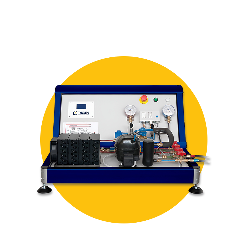 This educational bench has been specially created to help students gain theoretical and practical knowledge about using heat pumps to transfer heat from a source at one temperature to another source at a higher temperature.