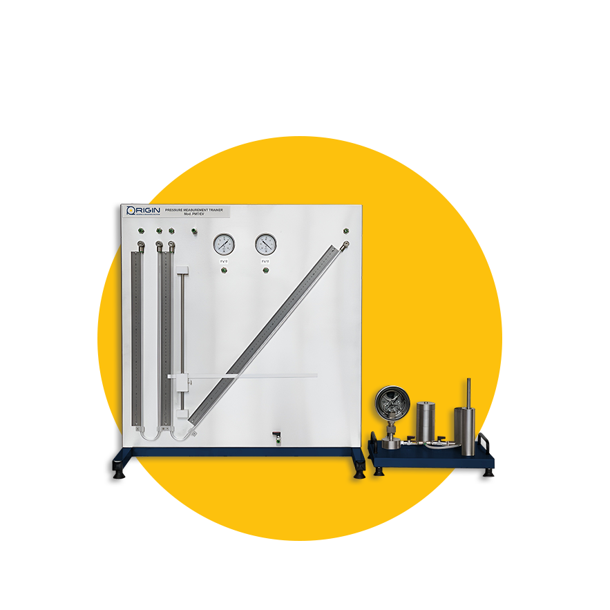 The experimental unit allows users to measure pressure using two different methods: by gauging the length of a liquid column (U-tube manometer) and by monitoring the change in shape of a Bourdon tube (Bourdon tube pressure gauge).