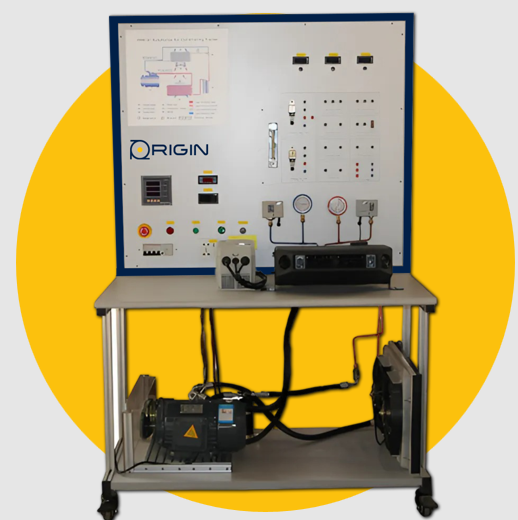 This learning tool includes authentic components from automotive air-conditioners, powered by an electric motor in place of the engine.